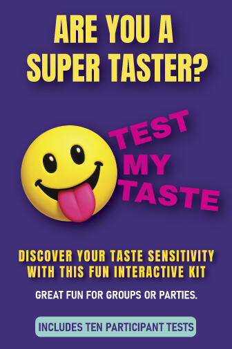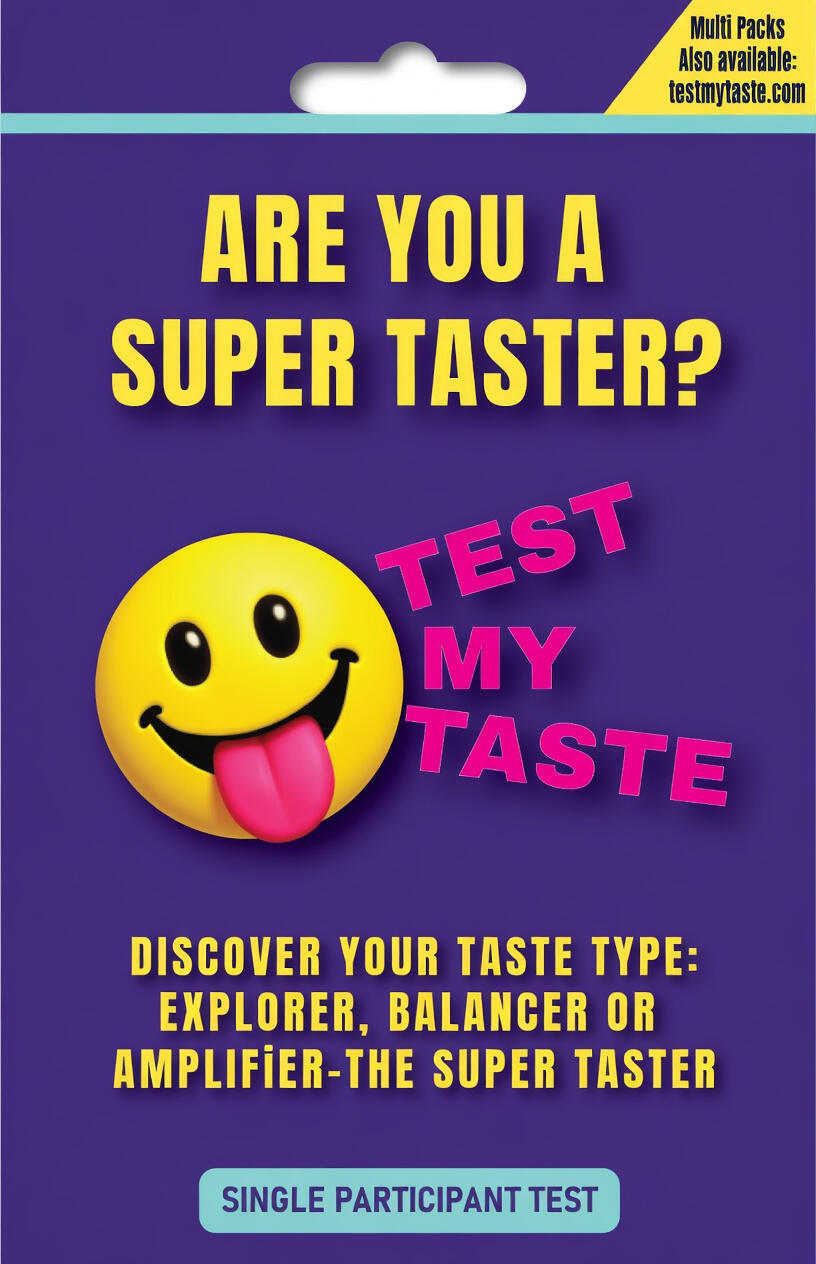 Discover how strong your taste buds really are—and whether you’re an Explorer, Balancer, or Amplifier (Super Taster). Find out with this fun taste test kit, available for one, five, or ten participants
